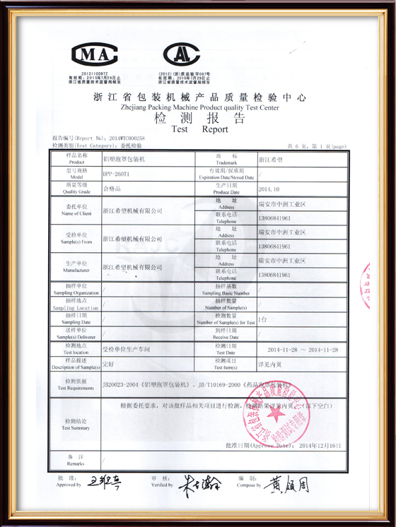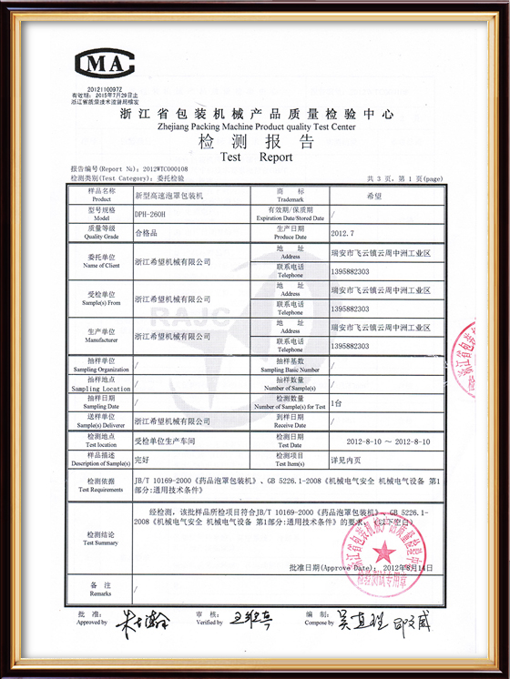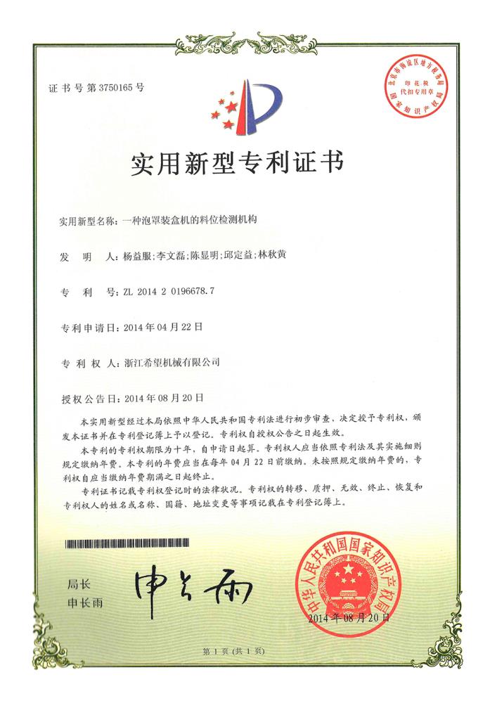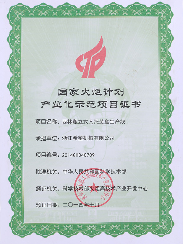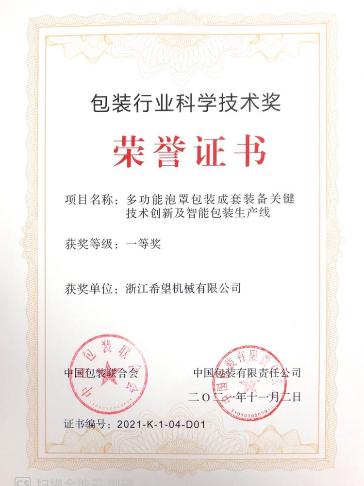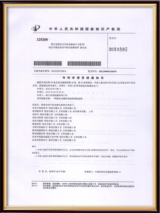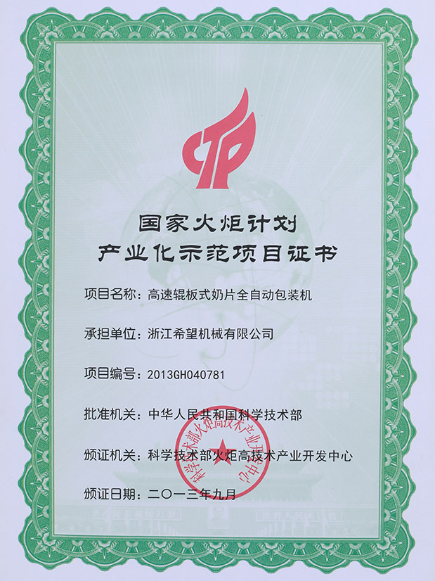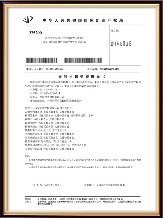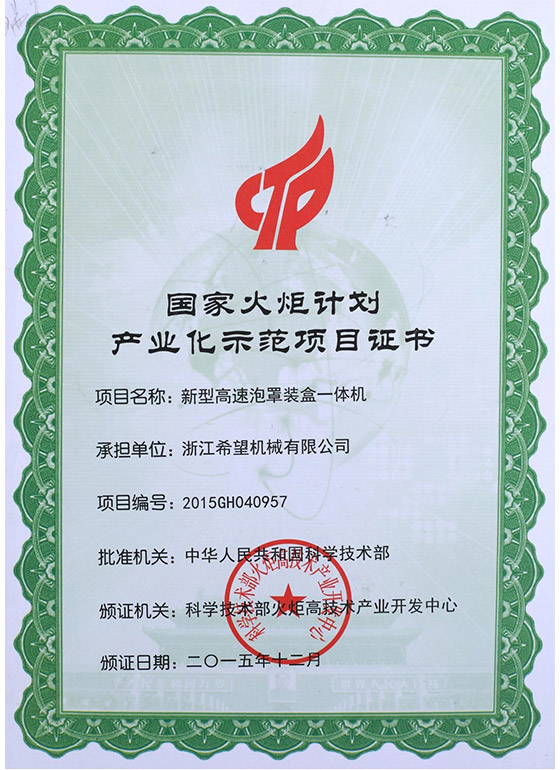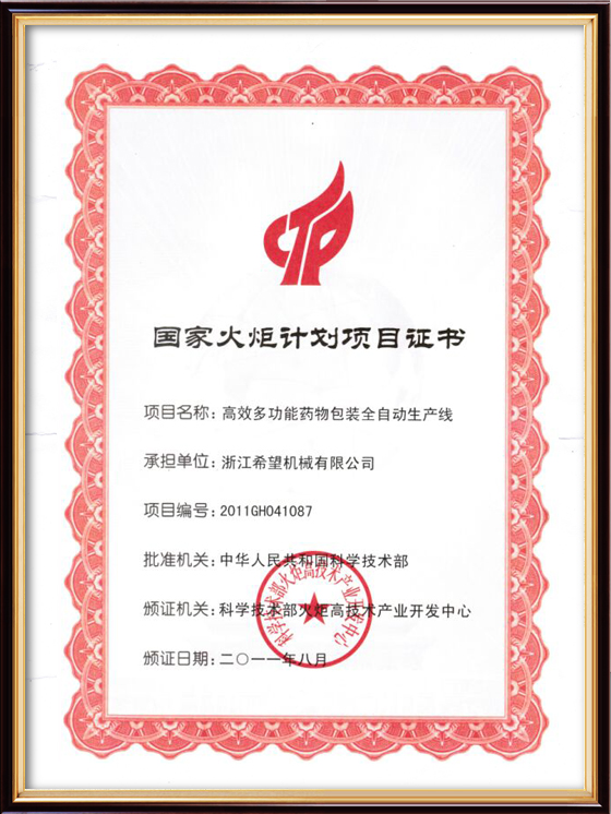 2016年“DHL600高速泡罩裝盒一體機”獲浙江省首臺套產(chǎn)品榮譽稱號。