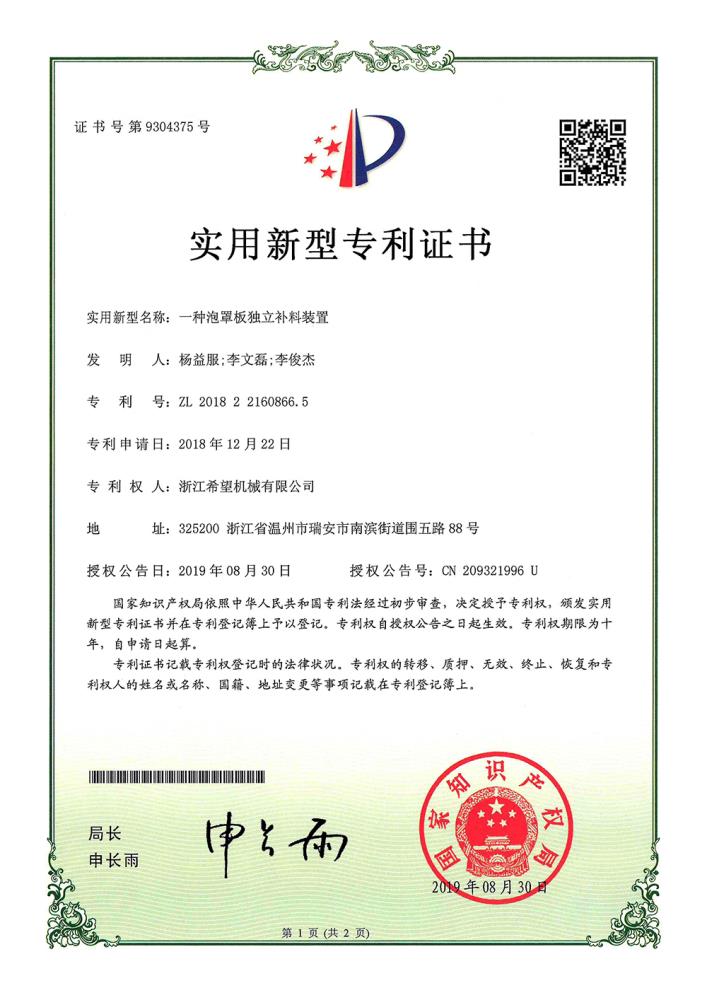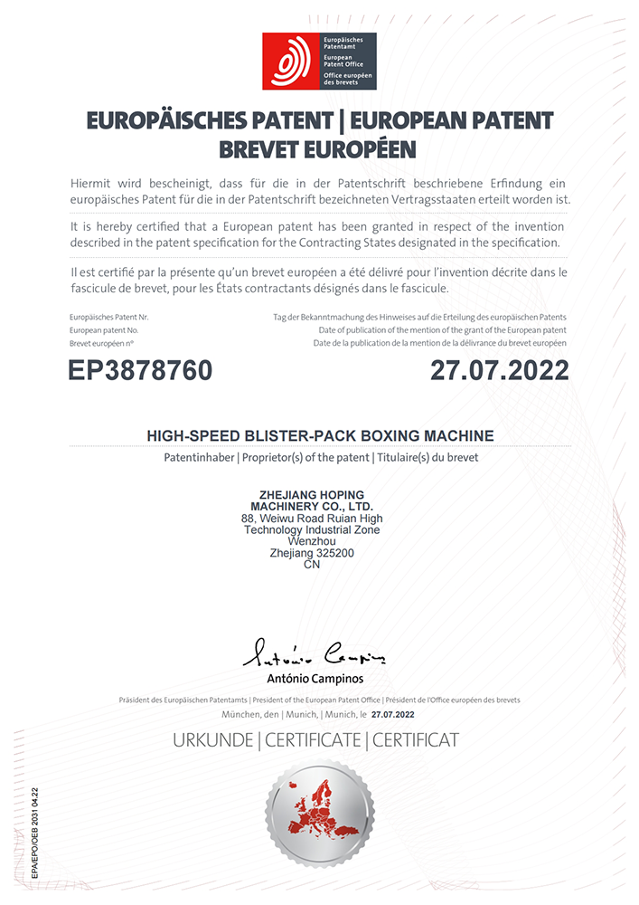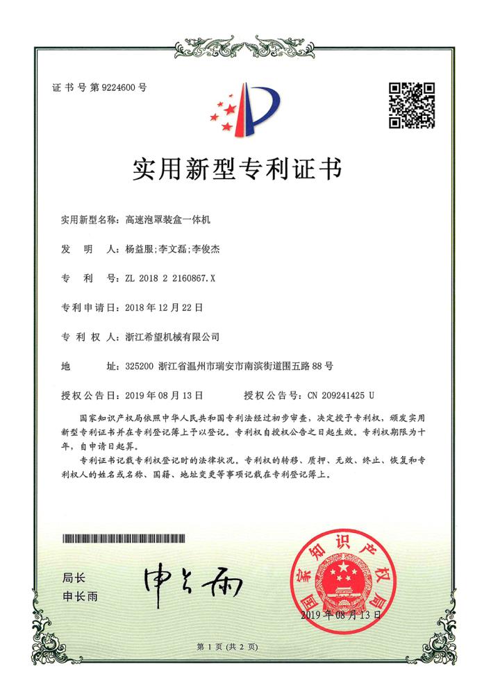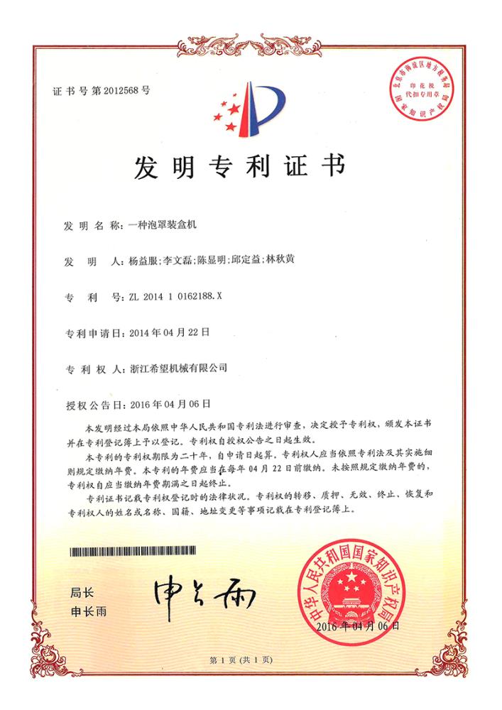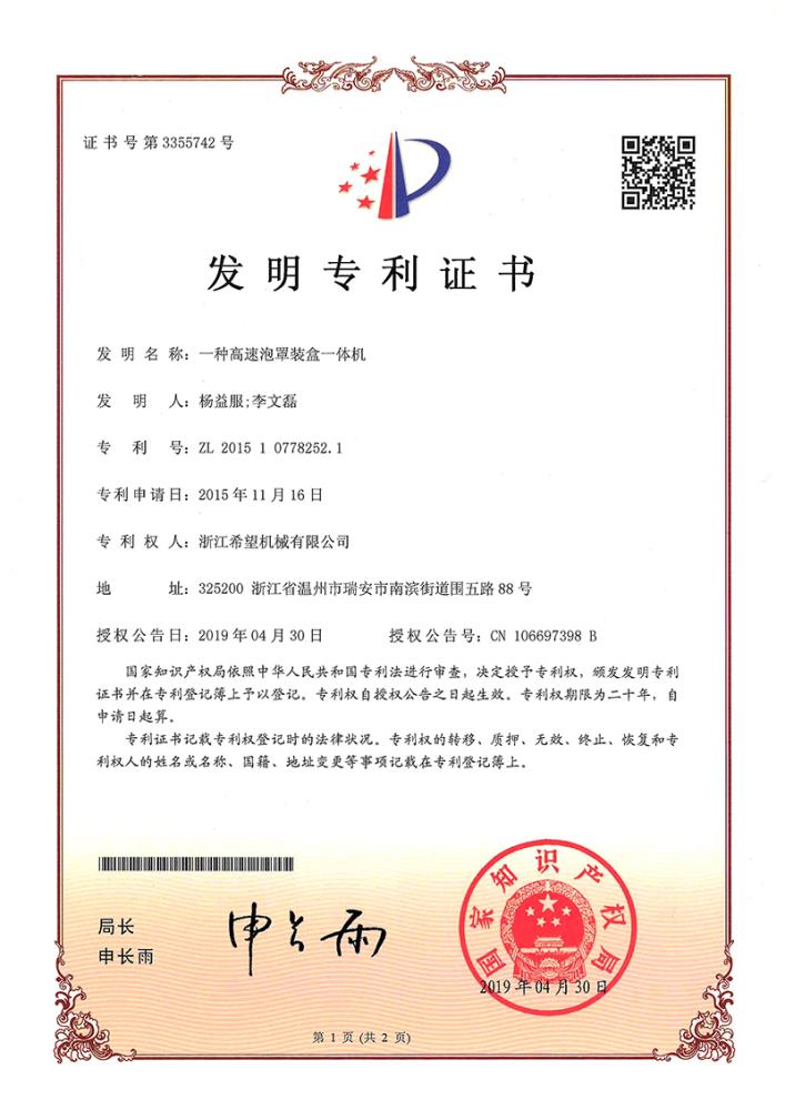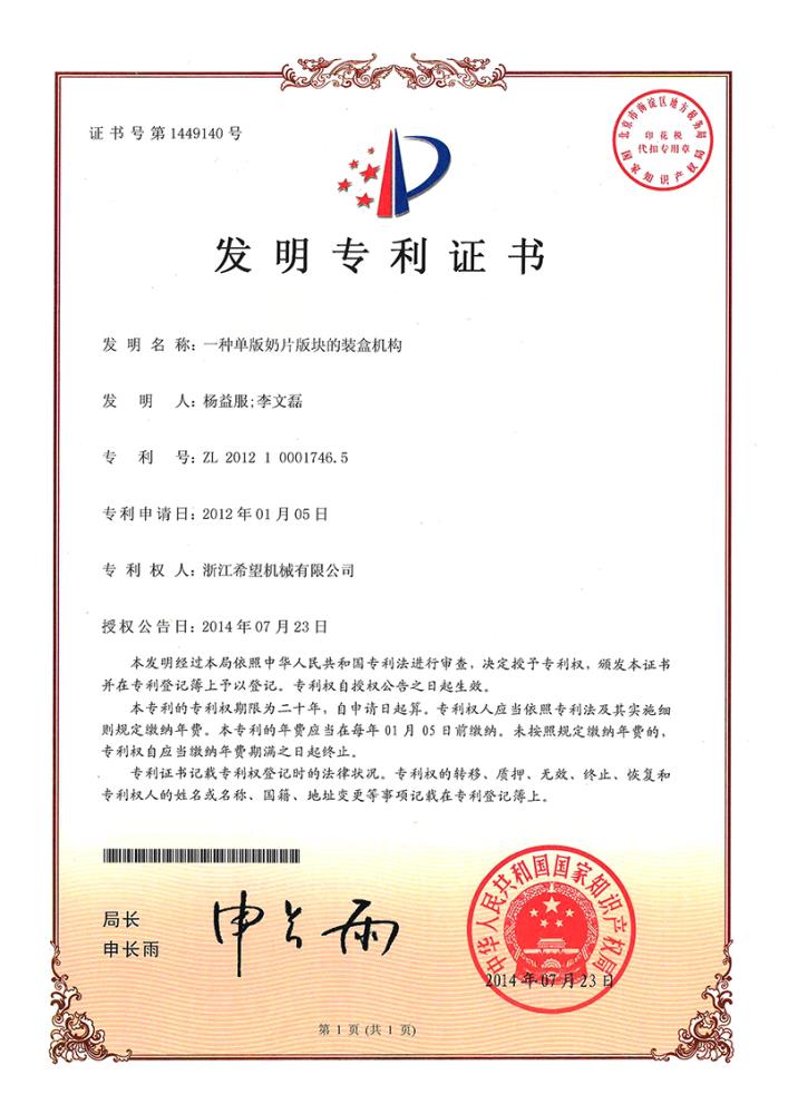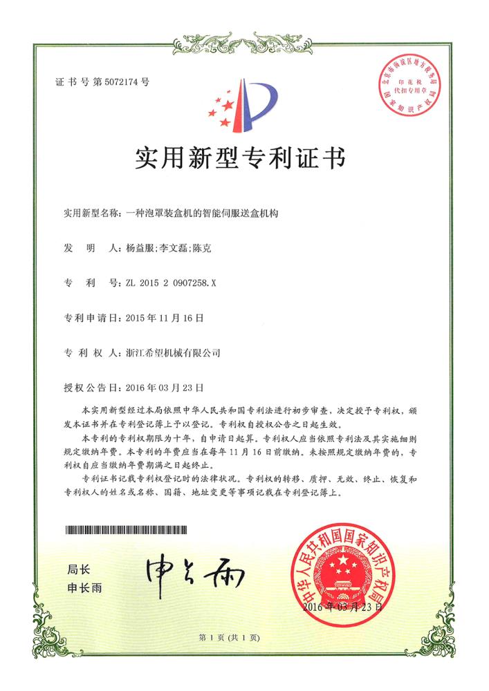 2016年“DHL600高速泡罩裝盒一體機”獲浙江省首臺套產(chǎn)品榮譽稱號。